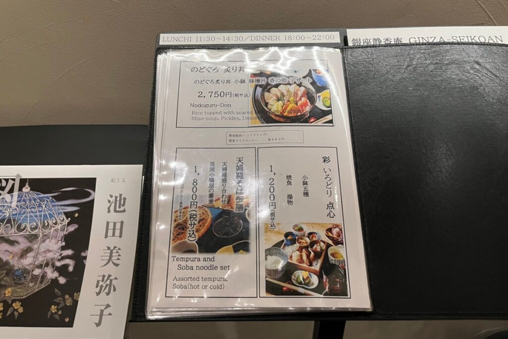 そこにはメニューも置かれていて、「彩点心(1,200円)」の文字がしっかり掲載されていました。税サ込みです。それを見て、まずはほっとひと安心。